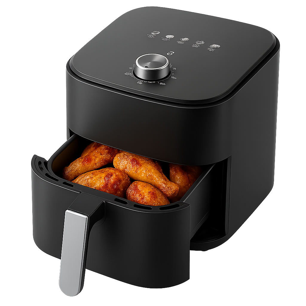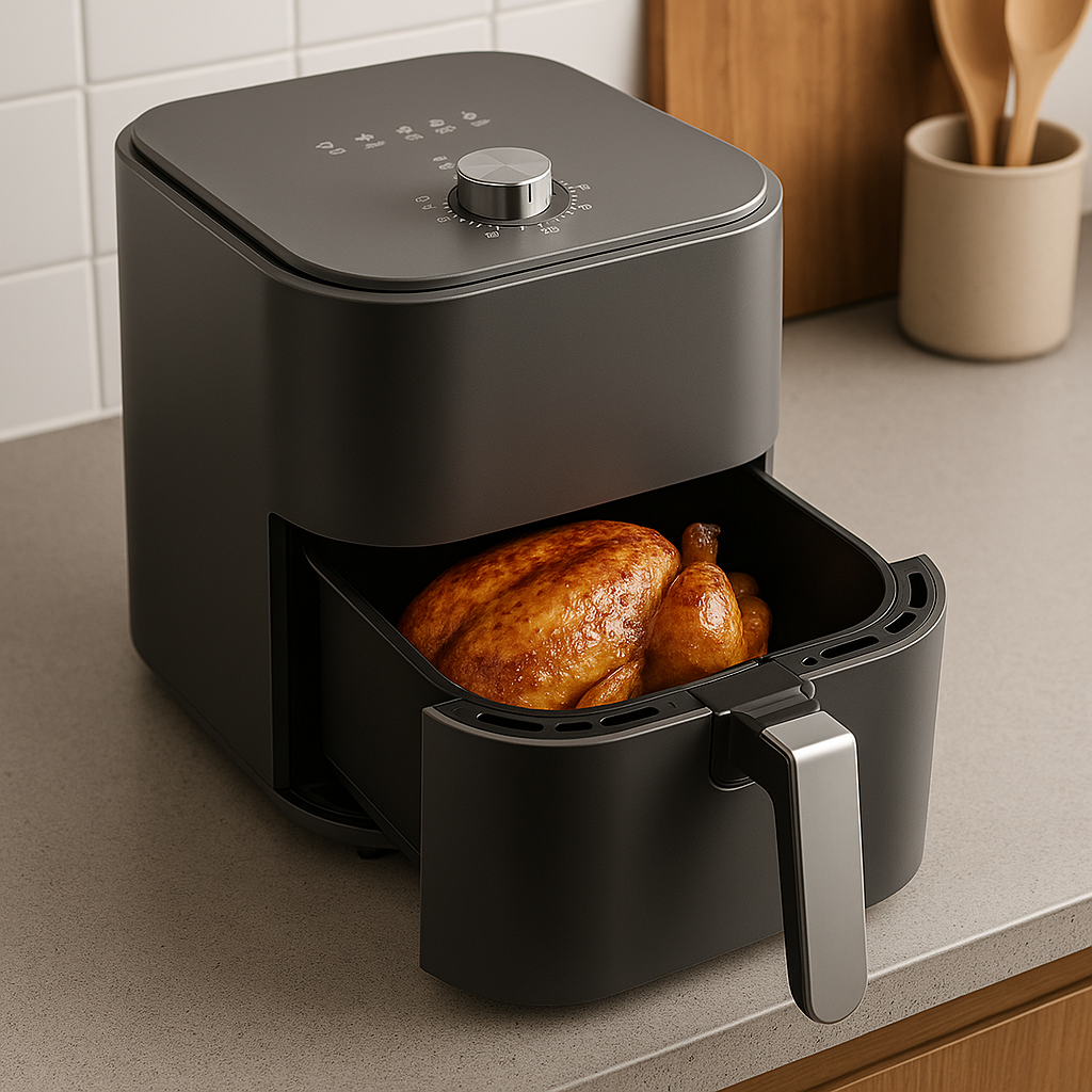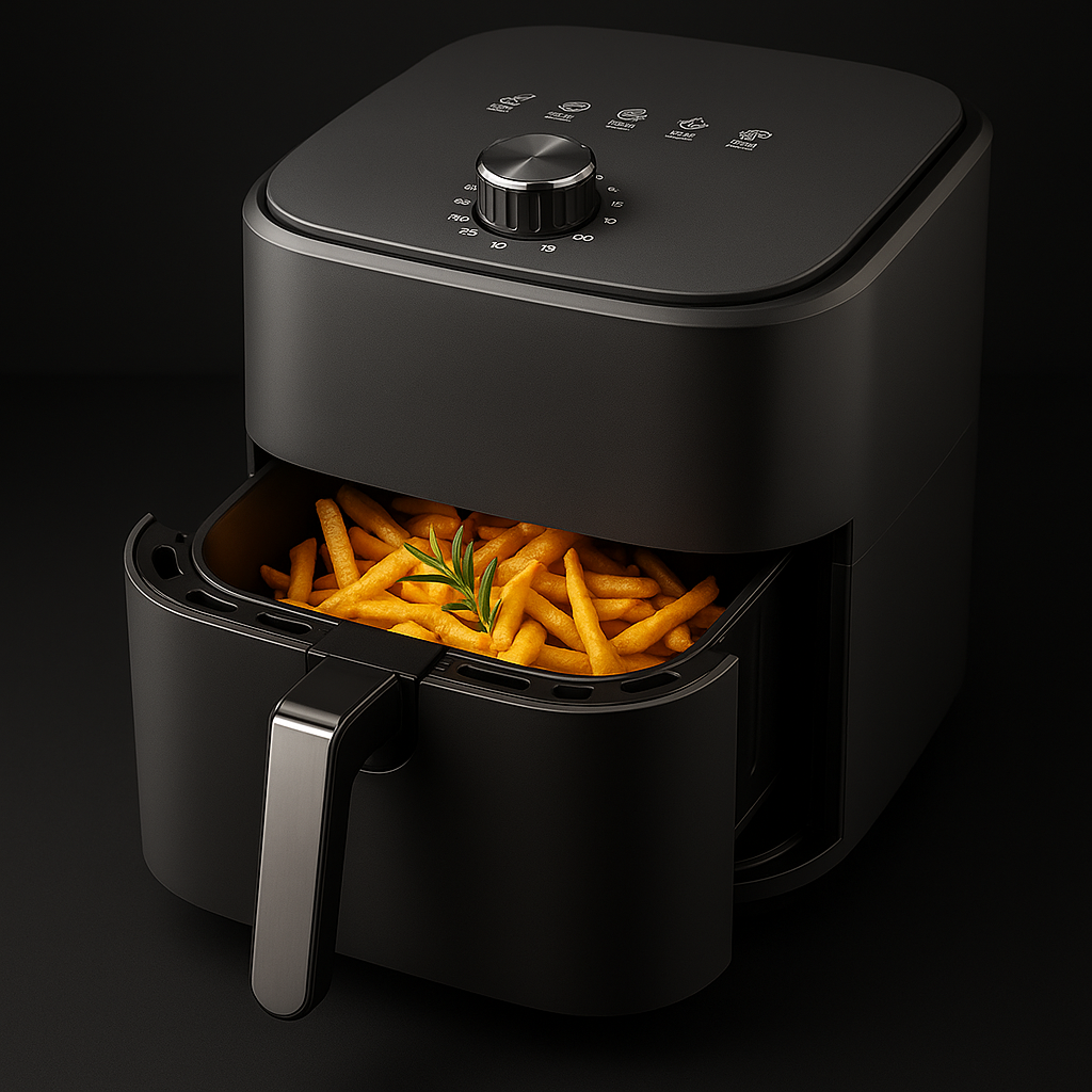 Tak, powietrze 360° sprawia, że potrawy są chrupiące bez dodatku tłuszczu. Możesz jednak dodać łyżeczkę, jeśli chcesz mocniej podbić smak.